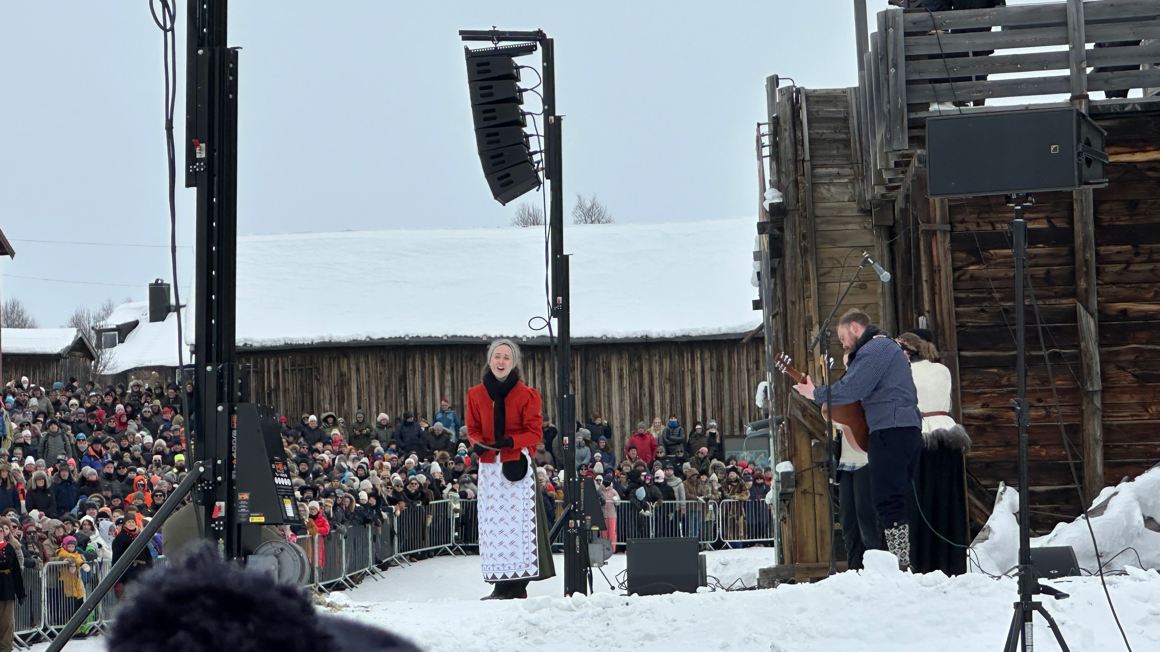 Etter hvert kom lasskjørerne fra distriktene og Sverige med sang, musikk og informasjon om lasskjørerne fra scenen. Lasskjøring betyr transport av varer med hest og slede. Tankene mine gikk til hvilket slit med kulde, snø og vind man måtte igjennom for å komme til Røros fra bygdene og Sverige. Rørosmartnan ble nemlig offisielt etablert i 1854 etter kongelig resolusjon for å organisere den omfattende, men ulovlige, vinterhandelen som allerede foregikk. Markedet startet på grunn av behovet for å bytte varer mellom norske og svenske bygder på vinterføre, samt å skaffe forsyninger til Røros Kobberverk.
